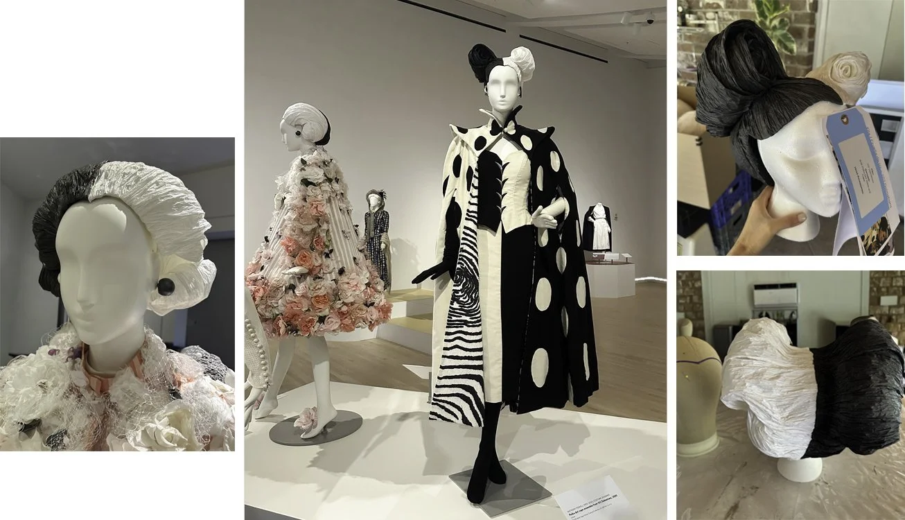 Created custom paper wigs for multiple looks and prepared garments for display.